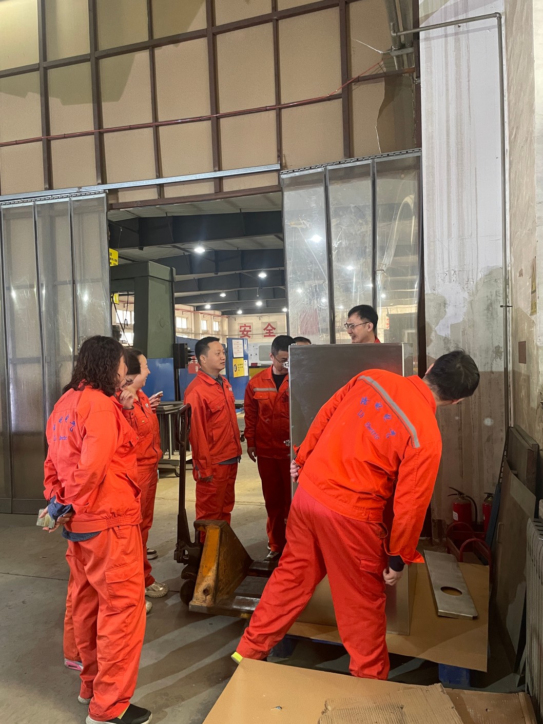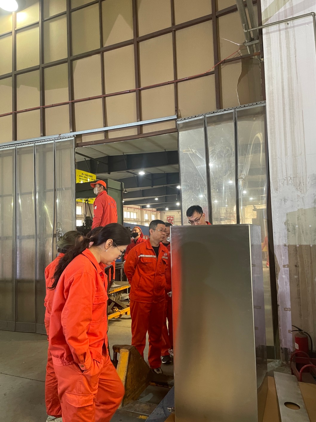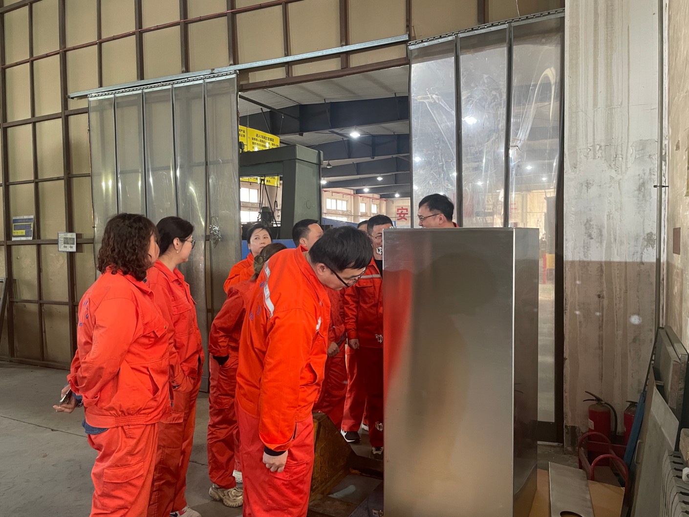 銷售部成員與機(jī)械部成員在一車間檢驗(yàn)區(qū)進(jìn)行外觀質(zhì)量參觀