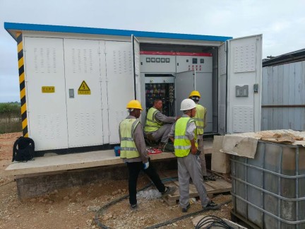 產(chǎn)品賣到哪里,服務就延伸到哪里。 公司技術人員在安哥拉項目現(xiàn)場指導調(diào)試我公司制造的箱式變電站。 24-05-11/LD-C-235 合同貨物 2臺630KVA 2臺1000KVA drand.cn