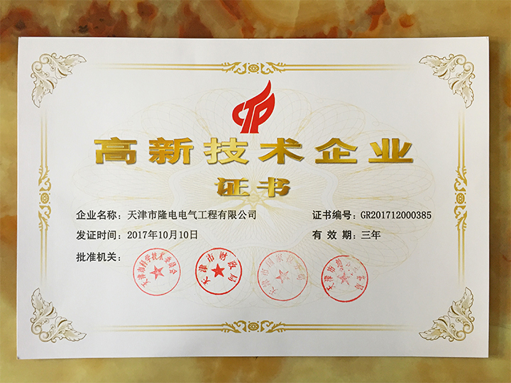 在連續(xù)數(shù)年被評定為國家級高新技術(shù)企業(yè)之后,近日,我司再次獲得由天津市科學(xué)技術(shù)委員會、市財政局、市國稅局、市地稅局等部門聯(lián)合頒發(fā)的國家“高新技術(shù)企業(yè)”證書。“高新技術(shù)企業(yè)”證書的申報成功,將極大推動我公司自主創(chuàng)新、自主研發(fā)的進程,這標志著我公司在高新技術(shù)企業(yè)中繼續(xù)得到國家的肯定,充分體現(xiàn)了我公司在行業(yè)高新技術(shù)及產(chǎn)業(yè)水平的領(lǐng)先地位,同時也是公司發(fā)展史上又一座輝煌的里程碑。祝愿天津市隆電電氣工程有限公司在以后的發(fā)展道路上銳意進取、節(jié)節(jié)攀升,創(chuàng)造更加燦爛、美好的明天。