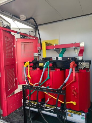 25-06-01/LD-C-272合同貨物~隆電電氣公司為中海油天津場(chǎng)地建造的大型箱式變電站已完成設(shè)計(jì)、生產(chǎn)、制造、檢驗(yàn)。該設(shè)備尺寸為L(zhǎng)*W*H=7000×3500×2820mm,由1臺(tái)SCB18-1600KVA變壓器和1臺(tái)SCB18-1250KVA變壓器及配套低壓柜構(gòu)成。今天完成最終測(cè)試,發(fā)往中海油天津現(xiàn)場(chǎng)。